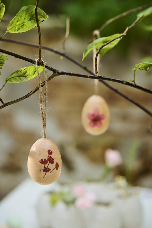Påskeegg i tre. 3ass. mønster m/oppheng