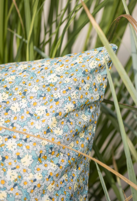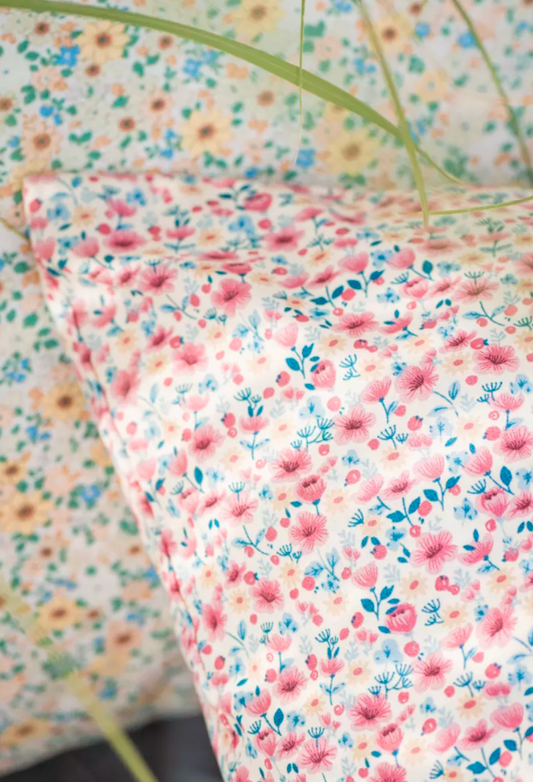 putetrekk blå m/blå.rosa og hvite blomster 60x60